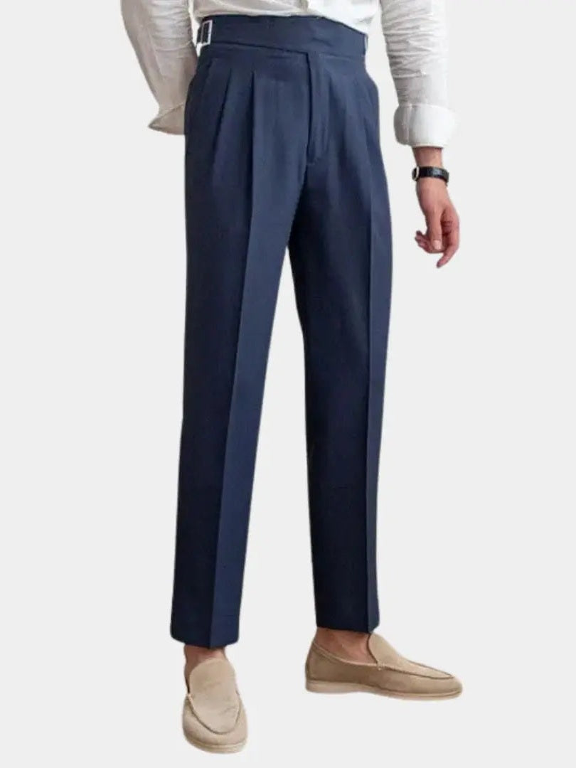 Elias™ | Elegante Gurkha Bukser repræsenterer Levianas arv inden for premium herrebeklædning. Udført i materialer af første klasses kvalitet og med omhyggeligt håndværk, kombinerer Elias™ den klassiske Gurkha-silhuet med en moderne pasform og behagelig bevægelsesfrihed. Det begrænsede antal gør bukserne til en tidløs investeringsvare, der lever videre som et tegn på prestige og gennemført kvalitet — ideelt for samlere og stilbevidste krævere, der søger varig værdi og provenance.